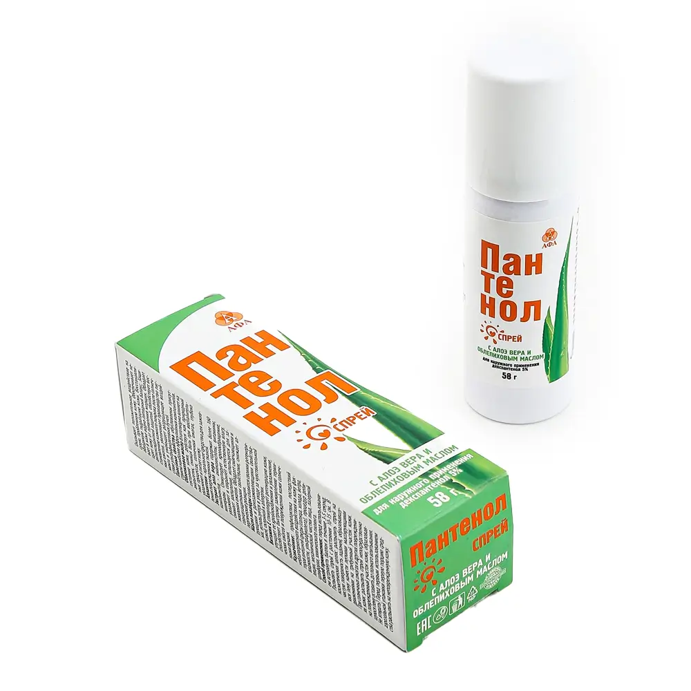 В составе спрея декспантенол — аналог пантотеновой кислоты, который быстро впитывается в кожу. Это самая стабильная форма кислоты в жидкой форме1. Д-пантенол хорошо растворяется в воде, спирте, но не в жирных средах.